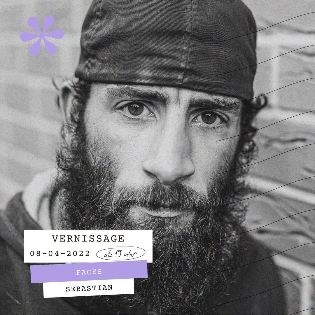 Sebastian fotografiert seit 2013 und ehrliche Portraits sind dabei seine Leidenschaft. Er liebt die Fotografie mit available Light: "Das ist Fotografie ohne viel Aufwand, das ist Fotografie in Reinform." In der Ausstellung faces portraitiert Sebastian diverse Menschen, die teils obdachlos sind und teils das Straßenmagazin "Draußen" verkaufen. Er möchte diesen Menschen ein Gesicht geben und darauf aufmerksam machen, dass es Menschen gibt, die in sehr schwierigen Umständen leben. Hinter jedem Menschen steckt eine spannende Geschichte. Ebenso hinter Sebastian, der leider seine eigene Ausstellung selbst nicht mehr miterleben darf. Möge er in Frieden ruhen! Wir sprechen allen Angehörigen, Freunden und Bekannten im Namen aller Beteiligten unser herzliches Beileid aus. Wir sind dennoch froh, dem überaus sympathischen Sebastian einen seiner letzten Wünsche in Erfüllung gehen lassen zu können. Die Portraits dieser Ausstellung können käuflich erworben werden. Der gesamte Erlös wird an das Palliativnetz Münster gespendet.