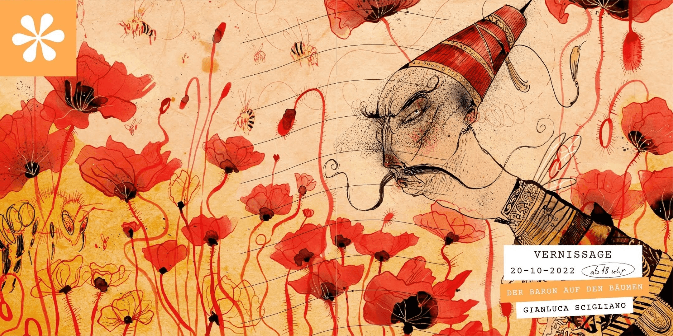 Der Roman „Der Baron auf den Bäumen“ von Italo Calvino erzählt übermütig und klug, witzig und melancholisch, die Geschichte des rebellischen Cosimo, welcher am 15. Juni 1767 beschließt, sein Leben auf den Bäumen zu leben… Eine Ode an die Entfaltung der persönlichen Individualität und an die enge Verbundenheit zur Natur, die aktueller und relevanter nicht sein könnte. In der gleichnamigen Ausstellung sind fertige Bilder und Skizzen zu sehen, die der Illustrator und Designer Gianluca Scigliano für eine Neuauflage des Literaturklassikers geschaffen hat. Wer die Lust verspürt in den fantastischen Kosmos Calvinos einzutauchen, kann sich das Buches zur Hand nehmen, darin schmökern und dabei eine Bildwelt entdecken, die in surrealistischen Szenen das Leben des jungen Cosimo begleitet. „Mein Ziel war es, dieser märchenhaften Welt durch eine ganzheitliche Buchgestaltung eine visuelle Ebene zu verleihen. In diesem Projekt trifft analoge Illustration auf digitale Collage und experimentelle Typografie.“ Wir verstehen uns als Spendengalerie. Durch den Verkauf der Bilder spenden wir einen festgelegten Anteil an einen gemeinnützigen Verein in Absprache mit den ausstellenden Künstler*innen. Die Spenden ermöglichen es, unterschiedliche soziale und nachhaltige Projekte aus aller Welt zu unterstützen.