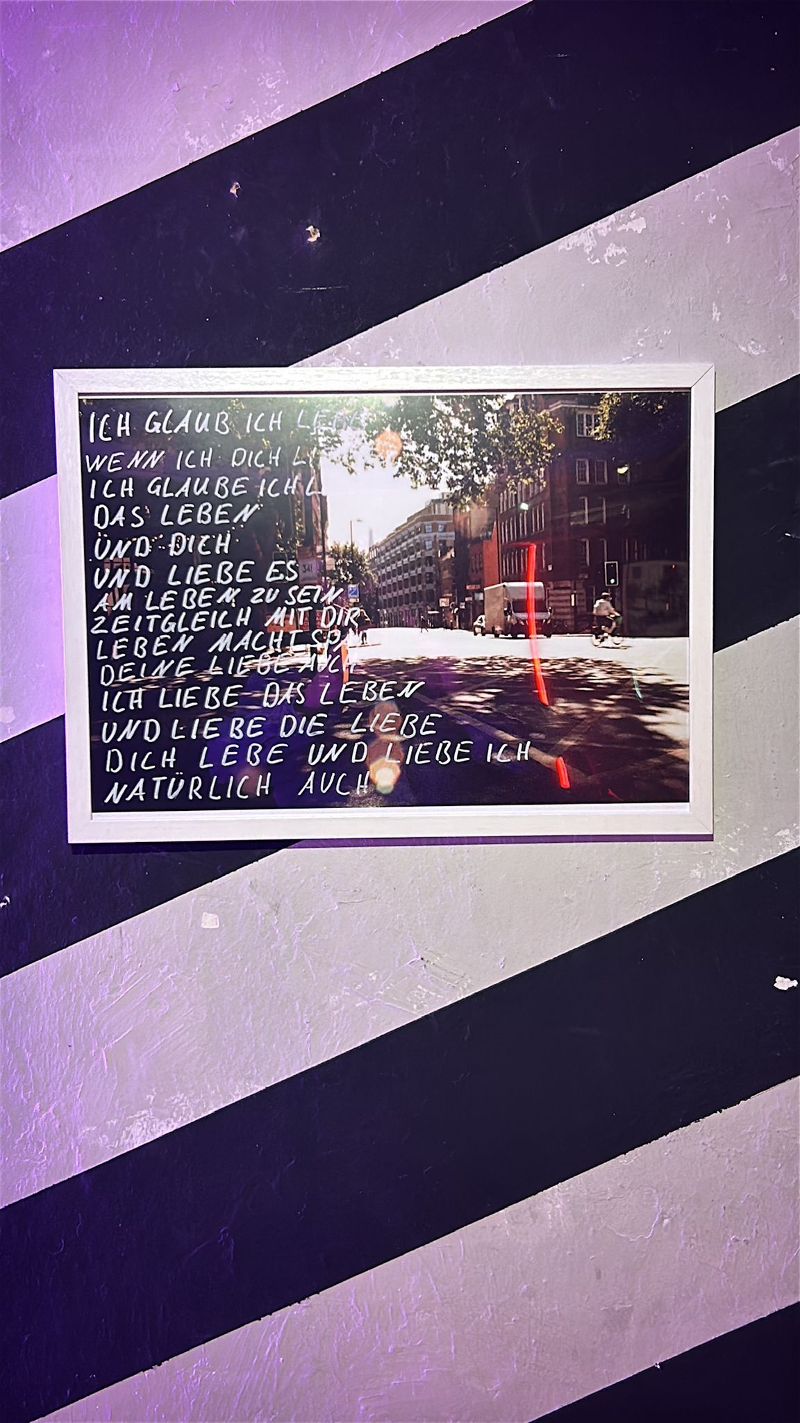 Als Finn und Sebastian vor knapp einem Jahr in der Küche saßen und einzelne Wörter hin und her geworfen haben, damit sie Gedichte darüber schreiben können, hatten Sie die Idee eine eigene Instagram-Seite zu erstellen für genau diese Gedichte. Ein ganzes Jahr später präsentieren sie nun Ihre Werke an dem Ort, wo sie auch vor 3 Jahren angefangen haben regelmäßig zu schreiben. Sebastian sagt: Bucketlistpunkt abgehakt ;). Den Jungs geht’s neben ihrem eigenen Verlautbarungsdrang vor allem darum, Menschen das Schreiben näherzubringen und sie zu motivieren selbst Texte zu veröffentlichen. Sebastian: „Traut euch eure eigenen Gedanken und Gefühle (was ja solche Texte im Endeffekt sind) anderen Menschen zu zeigen. Das befreit und ist wiederum ein wahnsinnig schönes Gefühl.“ Die Bilder worden von @Worthorst & @hoffnungslosverschrieben zur verfügung gestellt. Wir verstehen uns als Spendengalerien. Durch den Verkauf der Bilder spenden wir einen festgelegten Anteil an einen gemeinnützigen Verein in Absprache mit den ausstellenden Künstlern. In diesem Fall gehen die Erlöse an das Tierheim Münster.